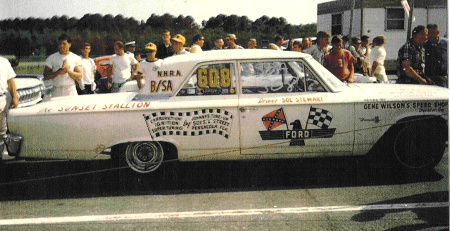 | Sol Stewart's "Sunset Stallion" that he has owned since 1963. It now has 3,504 miles on the odometer. It has never been driven on the street. It has been raced hard from 1963 to 1968 and has been stored in his warehouse since then. It is one of only 47 early lite weights built by Ford. The car weighs 3,550 pounds and has been raced as both a four speed and automatic transmission car. Sol is currently repainting and re-lettering the car as it is shown in the pictures |
