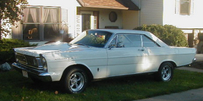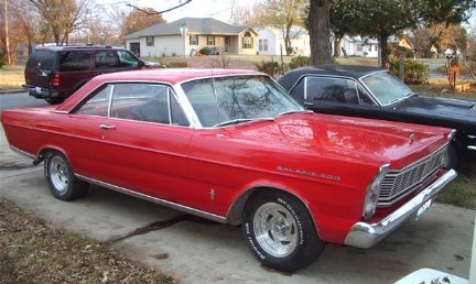 | Mike Radke's 1966 Galaxie 500 Convertible with less than 70,000 miles. The body is rust free, including the trunk, rocker panels, floor and other problem areas. The interior is in excellent condition considering it's age. It has a very stock 352 under the hood and a cruisomatic transmission. It also came from the factory with dual exhaust although Mike's (late) father-in-law changed out the original style mufflers for a pair of glass packs. |