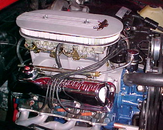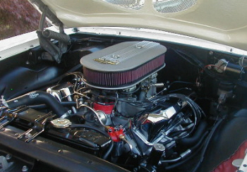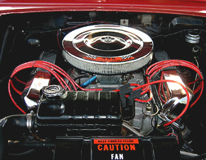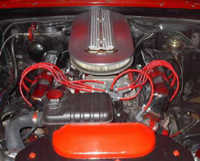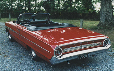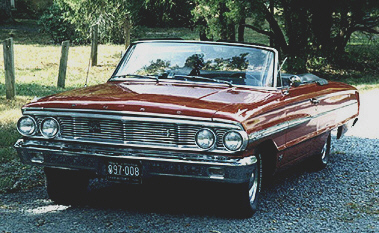 | Bill Haegele is very proud of his 1964 Ford Galaxie 500 Convertible powered by a 390 V-8. The long block was remanufactured by S&S Auto Engine Remanufactures of Spokane, WA. Carburetor is a 625 cfm Road Demon on an aluminum Offenhauser single-plane intake manifold. All safety equipment has been replaced with new parts. The trunk pan has been replaced. The floor pan was repaired, coated with POR-15 and covered with a layer of sound deadening / insulation material before being recarpeted. The body was repainted 2005 Ford Vermillion Red and all bodywork and paint prep was done by Bill. The interior has been reupholstered in reproduction stock upholstery from Dearborn Classics. The convertible top has also been replaced along with a new rear window. Sometime in the future the radio and speaker will be replaced (not that you could hear it over the dual Flowmasters when the top is down). |
