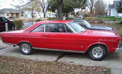 | Bob Travis has the distinction of owning this beautiful 1965 Galaxie 500 XL with all original paint; body (except for the hood) and trim. Bob is the third owner of this California "Black Plate" car. Under the hood sits a .060" over 391 truck block w/ forged 10.5:1 TRW pistons w/ Moly rings; C7AE-B rods converted for High Performance use; .010"/ .010" PI crank. The complete rotating assembly is balanced. Heads are Edelbrock w/ 2.15" intakes & 1.66" exhausts built by DSC. The Erson rollers are bumped by a Lunati cam with .563 I & .600 E lift. Duration is 280/ 290. Between the heads sits a Blue Thunder dual quad intake and although Bob didn't say what carbs he is using, They are fed by a Carter fuel pump. Oiling chores are handled by an M57HV pump drawing the slippery stuff from a Milodon oil pan with a Canton windage tray. To keep things cool there is an Edelbrock water pump. Tranny is a Street/ Strip C-6 w/ billet input shaft; billet converter and billet servo. Rear is a Ford 9" with 4.11s and a locker. Rims are Torque Thrusts (of course) w/ 245/60/15 Dunlops. |