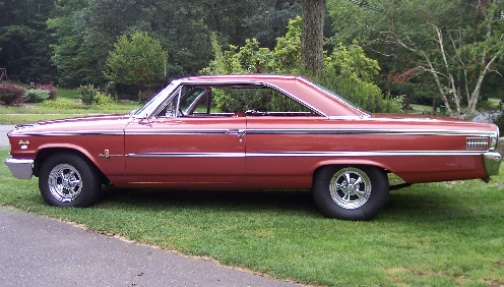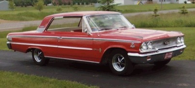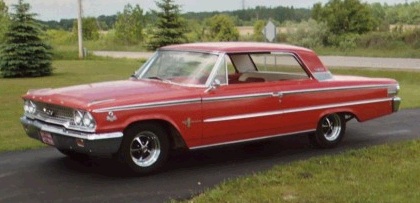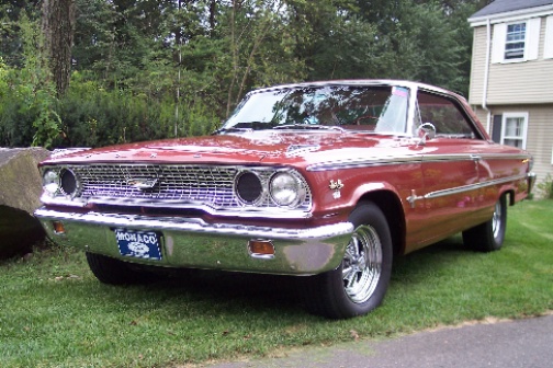 | Tom Barden's 1963 Galaxie 500 2 door "Box Top" is a factory "Z" code car with a 390 cubic inch engine and four speed manual transmission. |