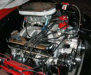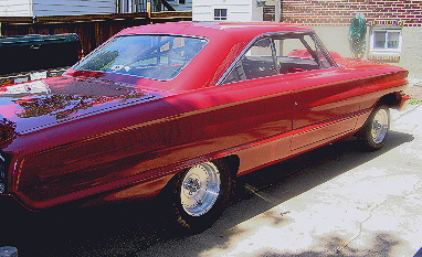 | Terry Dean transported this "Black Plate" (non running) rust free car he calls "California Dreaming" from Los Angeles where it was built in late 1963 to Maryland where he resides. He did a complete frame off restoration about four years ago. He nosed and decked it and will remove the fender antenna this winter as a typical 60's mod. Other than that, the body is stock. The engine is a modified 390, running a mild Crane cam; modified oiling system w/HV pump; HD shaft; windage tray and 427 filter adapter w/ 1/2" passages plumbed to dual remote filters. Intake is Edelbrock aluminum w/ rebuilt tri-power setup w/ progressive linkage. fed by a Holley electric fuel pump. Ignition is a Mallory dual point dizzy with Mallory wires and BF-32 plugs. Exhaust is Hooker Super Comp, adjustable coated headers w/ complete home-made mandrel bent duals into DynoMax mufflers at the rear. Rear is 3.91 open w/ Lakewood traction bars, but the rear is being changed to a 4.11 Detroit Locker this winter. Trans is a 4-speed top loader. Wheels are Crager S/S (What else?) |