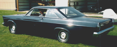 | Bill Ballinger's 1965 Ford. Right now it is a 352 with cruiso and 3.00 rear. Future plans call for a hot 390 with a T85N overdrive trans and some gears to compliment the OD. The trim isn't all on yet, so we are looking forward to it's completion. |