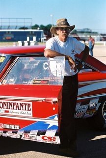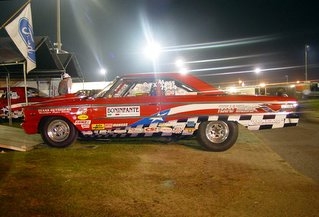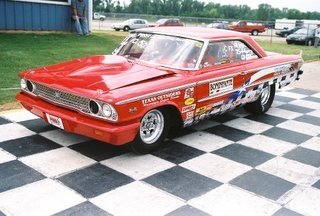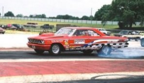 | Dan Bell's '63 Ford "Texas Thunder" Driven by Mark Artis (pictured). It's a 474 side oiler w/ Edelbrock heads; Venolia pistons; Scat crank, Eagle rods using a Tunnel Wedge Medium Riser setup with their "Lucille" engine power down through their Texas Thunder/Boninfante clutch; Jerico trans w/5.00 gears. http://www.texasoutsiders.com http://www.texasthunderperformance.com |