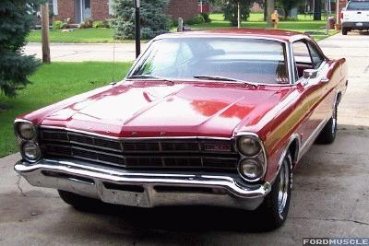 | Jim Wisker's 1967 XL came with the factory 390 and four speed trans; power disc brakes; power steering; in dash A/C bucket seats and console. The 390 was rebuilt with a CompCams 270H cam; Crane rockers F- 427 intake; BG Speed Demon 650 carb; FPA headers into 2 1/2" exhaust w/ 40 series Delta flows. Hooking the power to the trans is a Center Force Dual friction clutch. Shifting is handled by a Hurst Competition Plus shifter. Wheels are 15" X 8" Magnum 500's all the way around. |