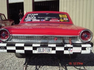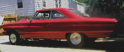 | Richard Metzger's '64 Galaxie is under construction, but is almost complete. Fiberglass front & rear bumpers; hood; fenders and trunk lid; 14 point roll cage. Genesis 2 block 4.25" bore and Crankshaft Specialists billet 4.25" stroke for 482 c.i.d. Carrillo BBC con. rods; Venolia 14.5:1n pistons; Total Seal rings; Clevite main, rod, and cam bearings (coated.) Coated piston skirts; BHJ harmonic dampner. Ron Davis aluminum radiator w/ CSR electric water pump. Canton Custom oil pan. Dove Glidden High Riser heads w/Dove HD roller rocker arms , stands and end supports. Titanium 2.25" I /1.70" E valves Racer Brown .778 solid roller cam; Crower lifters; Smith Bros. 3/8 X 120 pushrods. Dove Parquet Dominator intake w/ 1300 King Demon fed by a Product Engineering 460 fuel pump. MSD crank trigger; Mallory tach drive; Moroso tach MSD digital 6 box & coil. MFR custom headers. Dynamic Converters C-6 rollerized w/5000 stall & trans brake and Chetah shifter . Rear is a Harwood nodular carrier w/ Moser spool; Daytona pinion support; 4.56 gears and 60" ladder bars. There are many more quality parts too numerous to mention. |