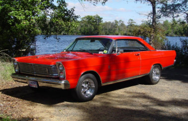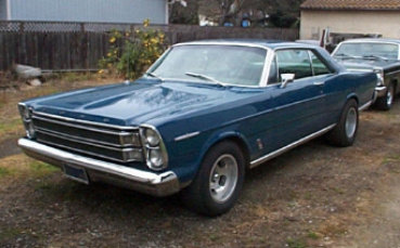| Bob Plowmans 1966 is an original 428 "Q" code LTD car (not a 7 Litre) . Carb is a single 600 cfm Holley. Cam is the old 406 solid lifter cam with 276 duration. Tranny is a C-6 w/ 4 clutch hi/rev, but still has the old Cruiso - D1 - D2 valve body. Bob does all his own engine, body and transmission work. |