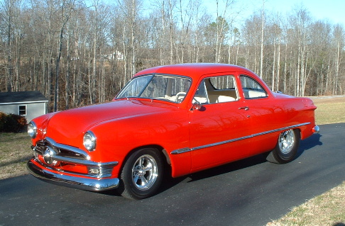 | Bill Orrick's stunning 1949 Ford with a SOHC 427 under the hood. Bill says he drives it like he stole it. Sweet! |