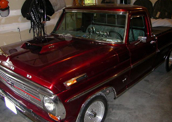 | From our 'Trucks' page is this beautiful candy red SOHC 427 powered pickup truck. It's owner is R. Wayne Jeffers who also owns the awesome Fairlane below and several other SOHC powered vehicles of champions from the past. |