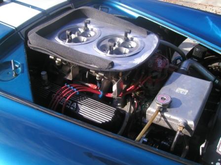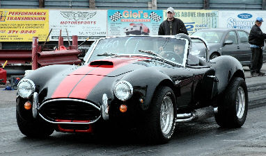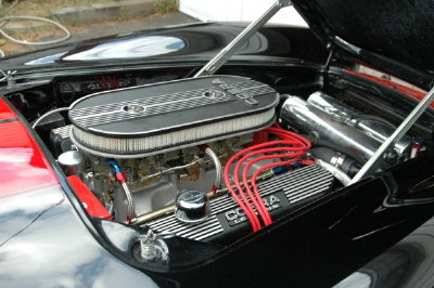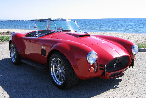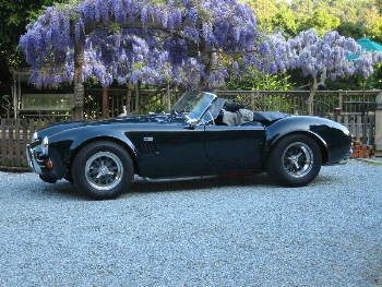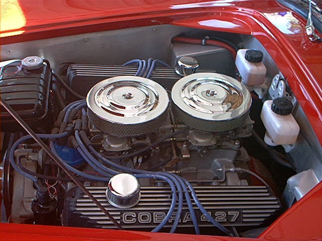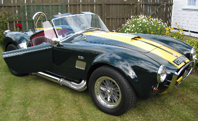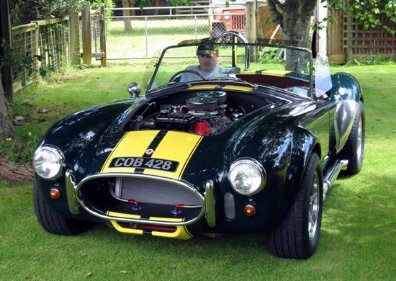 | Here is a Cobra from "Down Under" Nigel & Sue Townsend hail from New Zealand and are the proud owners of this beautiful automobile. It was previously powered by a 428 c.i.d. Ford motor, but they just installed their new 427 Ford motor from Guessford Machine in Hastings, Nebraska to replace the 428. AWESOME! |