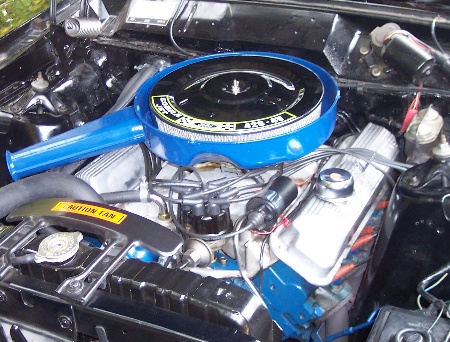 | Brandon's 1968 Falcon notchback powered by a 487 Cubic inch FE motor with fully ported 428 Cobra Jet heads and 13.6: compression ratio. Cam is a full roller with .740" lift with 276 degrees intake & 284 degrees exhaust at .050" lift. Feeding the mill is a Holley Dominator 1050 atop a Port-O-Sonic intake with a fully ported Dominator plate welded to it. Tranny is a Power Glide into a 9" rear w/ 4.56 gears; spool and 31 spline axles. |