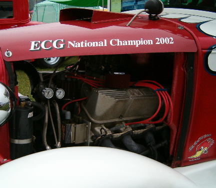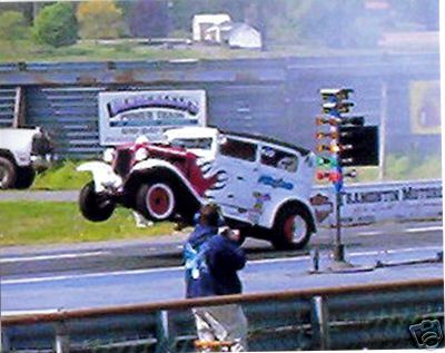 | FEarless is a 1931 Model "A" Ford owned by Buddy Janiszewski from right down the road from me in Quakertown, PA. It is powered by a 427 Cubic inch FE mill bored and stroked to 472 cubic inches with a Scat crank and rods. Compression ratio is 11:1 The Edelbrock aluminum heads are ported and polished with Dove roller rockers w/ hardened steel shafts & end stands and covered with Dove aluminum 427 valve covers. The heads are fed by a Holley 850 double pumper with a ProForm center section through a Dove single 4bbl Intake manifold. Valves are actuated by a Comp Cams solid roller cam w/ .700 lift. Tranny is a C-6 with a shift kit Cheetah SCS shifter and a 3,800 stall converter. Rear is a 9" with 4.11 gears Moser 33 spline axles and spool with ladder bars. I love the "Old School" approach this car takes. |