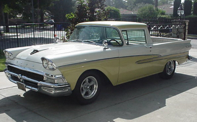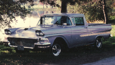 | The un-identified owner of this 1958 Ranchero says it is powered by a '62 406 c.i.d. mill. |