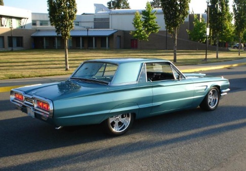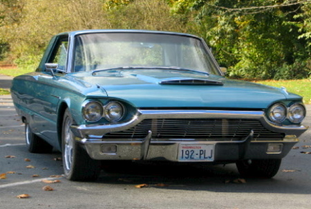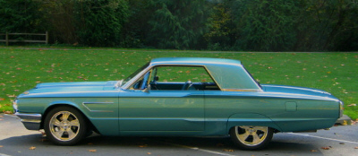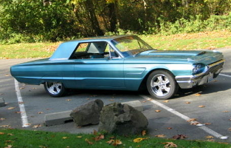| Ryan Rex's 1966 Thunderbird w/ 428 power was bought in 1996 when he was in college. He bought it from the second owner and it was all original. It's loaded with options including power drivers seat; swing away steering wheel; AM radio with 8 track 4 speaker stereo with power antenna; over head and floor consoles; power windows (including wing vents) and vacuum powered door loccks. The 428 had recently been rebuilt when he bought it. It has surprised many people on freeway onramps who must have thought it was just an old car to try to pass. That 428 gets it moving pretty well for it's size. Future plans include upgrading the 428 to Cobra Jet spec's (heads, intake, carb, cam and exhaust manifolds) to gain some horsepower, while still passing smog inspections. |
