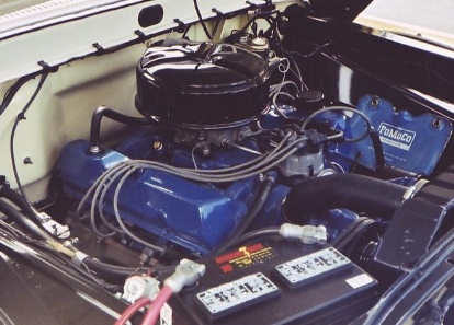 | Larry Kortkamp's 1969 F-100 "Blue Hoover" is Powered by a 428 Mediun Riser with 2x4Bbls and a four speed trans. |