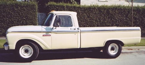 | Another Canadian Mercury Pickup truck. This one is owned by Eric Donaldson and is a 1966 Mercury Camper Special (Not an M-250) restored at 69,000 miles Motor is a stock 352 with a Comp Cams 255H cam built by Tom P. It looks like one tough Ford truck to me. |