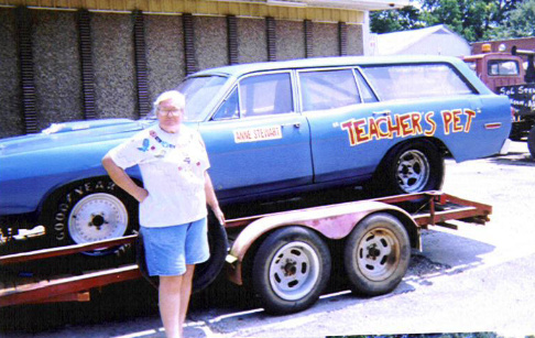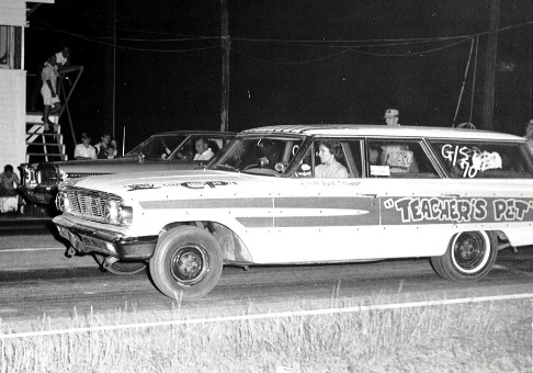 | The Original "Teacher's Pet" campaigned by Anne Stewart. 1966 Ford Country Squire with 390 FE power. The motor is a 330 Horsepower out of a '62. Since Miss Anne was a teacher and head of the English Department at Pensacola High School they named the car "Teacher's Pet". The car dominated her class and usually Jr. Stock Eliminator everywhere she raced. Her best day was when she won the Alabama State Championship at Mobile. |